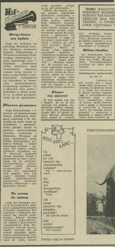 Archiwum / Mieszanka firmowa nr 651 (40/1957) 5462/23815 Podziel się Tytuł Mieszanka firmowa Rubryka Mieszanka firmowa Artykuł z numeru 651 (40/1957) Data wydania 29 września 1957 Tagi striptiz Cyrankiewicz galanteria żelazna pismo Milicja obowyatelska Uniechowski