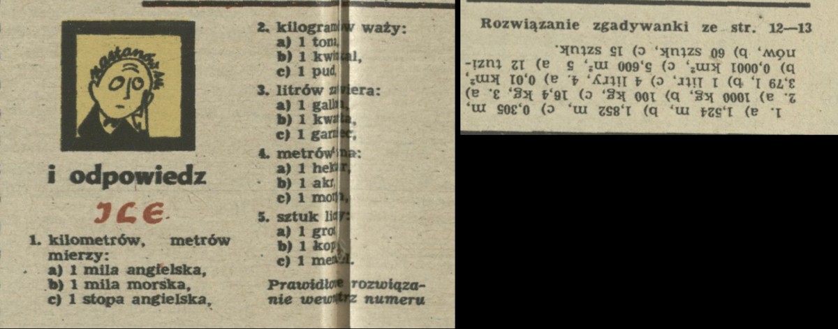 Archiwum / Zastanów się nr 635 (24/1957) 1/1 Podziel się Tytuł Zastanów się i odpowiedz ile Rubryka Zastanów się Artykuł z numeru 635 (24/1957) Data wydania 9 czerwca 1957 Tagi zagadka zgadywanka matematyka