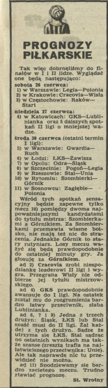 Archiwum / Sport nr 1055 (26/1965) 44249/123969 Podziel się Tytuł Prognozy piłkarskie Autor Stanisław Wrotny Kategoria Sport Artykuł z numeru 1055 (26/1965) Data wydania 27 czerwca 1965 Tagi sport piłka nożna prognozy