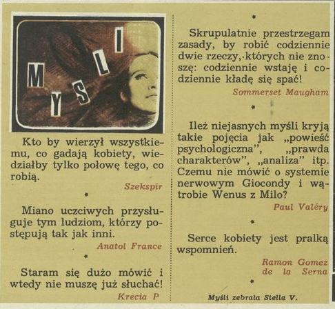 Archiwum / Myśli nr 1337 (47/1970) 54576/123969 Podziel się Tytuł Myśli Autor Stella Varcaby Rubryka Myśli Artykuł z numeru 1337 (47/1970) Data wydania 22 listopada 1970 Tagi cytaty myśli aforyzmy