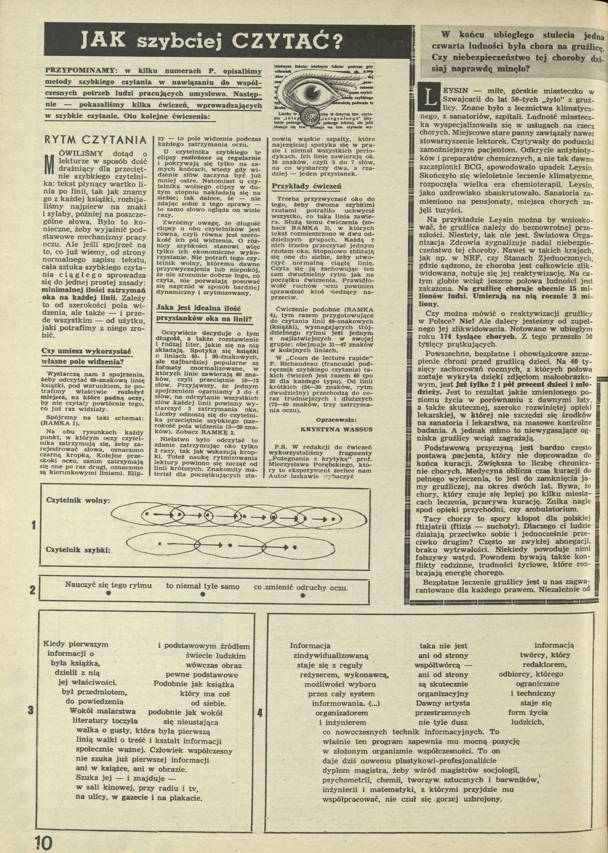 Archiwum / Różności nr 1337 (47/1970) 67983/121061 Podziel się Tytuł Jak szybciej czytać Autor Krystyna Wassus Kategoria Różności Artykuł z numeru 1337 (47/1970) Data wydania 22 listopada 1970