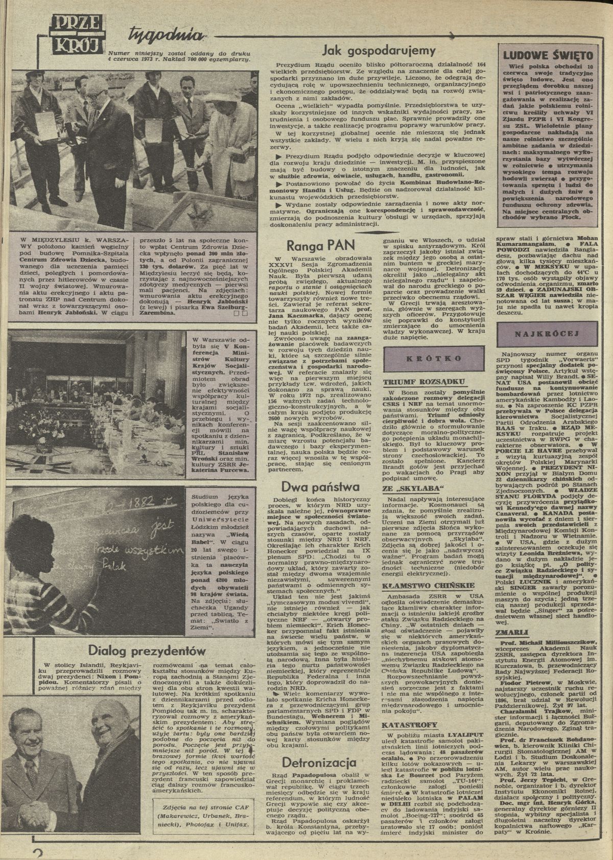 Archiwum / Przekrój tygodnia nr 1470 (23/1973) 11/22 Podziel się Tytuł Przekrój Tygodnia Rubryka Przekrój tygodnia Artykuł z numeru 1470 (23/1973) Data wydania 10 czerwca 1973 Tagi PAN Centrum Zdrowia Dziecka Jan Kaczmarek Łucznik Singer Nixon Pompideu
