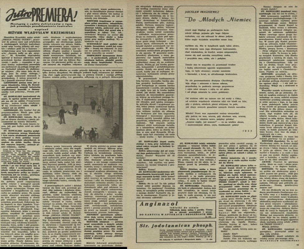 Archiwum / Teatr nr 416-17 (13-14/1953) 5/6 Podziel się Tytuł Jutro premiera! Autor Władysław Krzemiński Rubryka Teatr Artykuł z numeru 416-17 (13/1953) Data wydania 24 marca 1953 Tagi przedstawienie