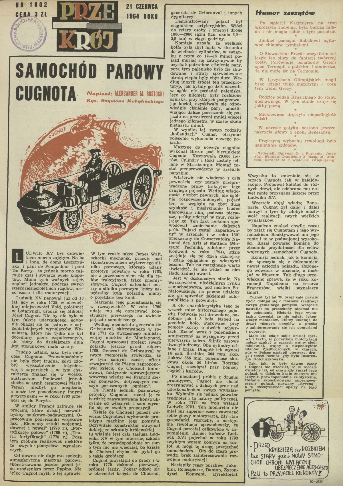 Archiwum / Artykuł nr 1002 (25/1964) 109/518 Podziel się Tytuł Samochód parowy Cugnota Autor Aleksander M. Rostocki Kategoria Artykuł Artykuł z numeru 1002 (25/1964) Data wydania 21 czerwca 1964 Tagi Ludwik XV