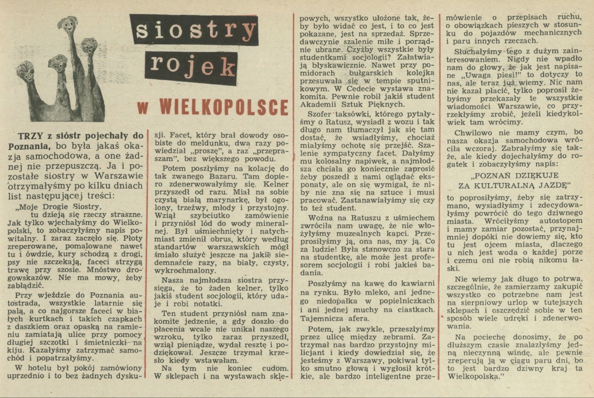 Archiwum / Artykuł nr 954 (29/1963) 69/101 Podziel się Tytuł Siostry Rojek w Wielkopolsce Autor Siostry Rojek Kategoria Artykuł Artykuł z numeru 954 (29/1963) Data wydania 21 lipca 1963 Tagi Poznań Wielkopolska