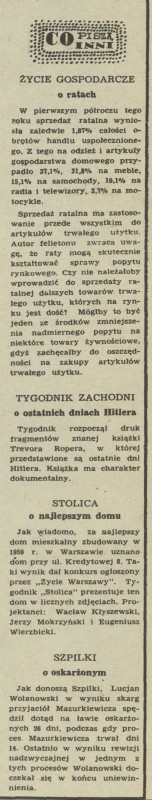 Archiwum / Co piszą inni nr 764 (48/1959) 3/3 Podziel się Tytuł Co piszą inni Rubryka Co piszą inni Artykuł z numeru 764 (48/1959) Data wydania 29 listopada 1959 Tagi życie gospodarcze Stolica Szpilki