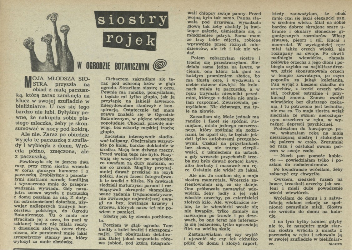 Archiwum / Felieton nr 947 (22/1963) 39781/123969 Podziel się Tytuł Siostry Rojek w ogrodzie botanicznym Autor Siostry Rojek Kategoria Felieton Artykuł z numeru 947 (22/1963) Data wydania 2 czerwca 1963 Tagi wiewiórki ogród botaniczny