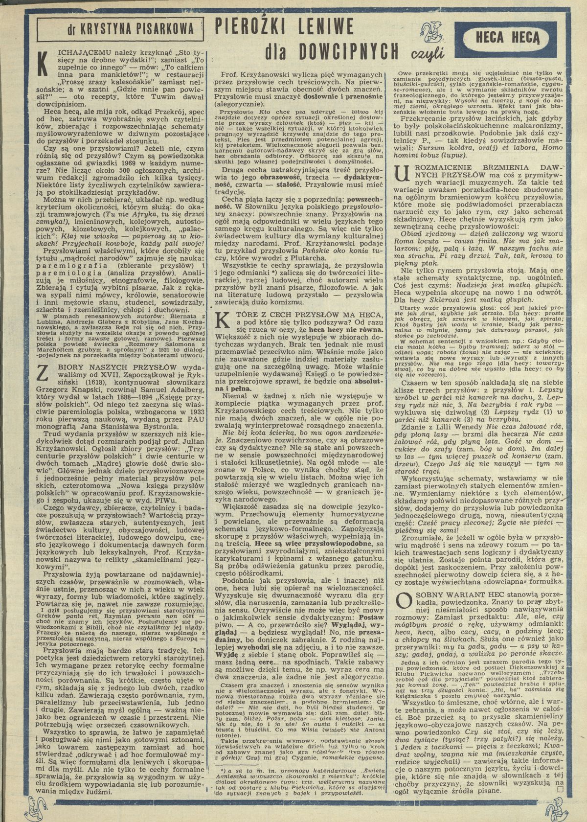 Archiwum / Heca hecą nr specjalny 51/1970 49/436 Podziel się Tytuł Heca hecą Autor Krystyna Pisarkowa Rubryka Heca hecą Artykuł z numeru nr specjalny 51/1970 Data wydania 24 grudnia 1970