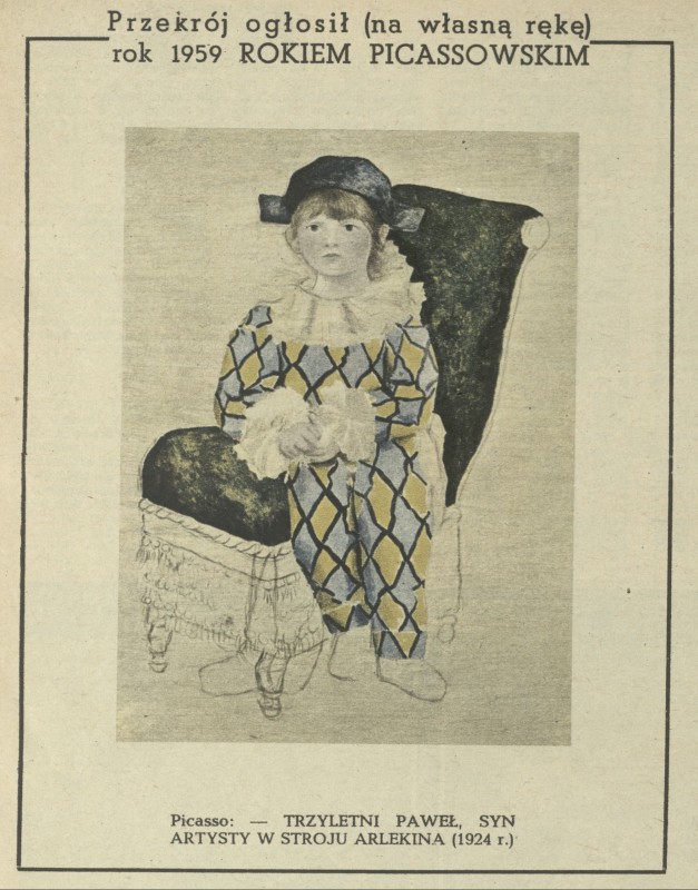 Archiwum / Kultura nr 765 (49/1959) 474/475 Podziel się Tytuł Rok Picassowski Kategoria Kultura Artykuł z numeru 765 (49/1959) Data wydania 6 grudnia 1959 Tagi Pablo Picasso Trzyletni Paweł syn artysty w stroju arlekina