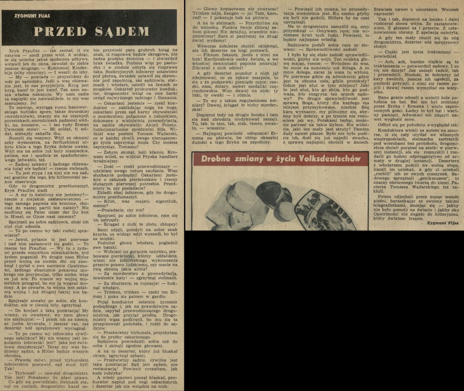 Archiwum / Relacja nr 1 (01/1945) 15/123969 Podziel się Tytuł Przed sądem Autor Zygmunt Fijas Kategoria Relacja Artykuł z numeru 1 (1/1945) Data wydania 15 kwietnia 1945 Tagi Eryk Praufisz drogomistrz dezerter Tomasz Wądrawski