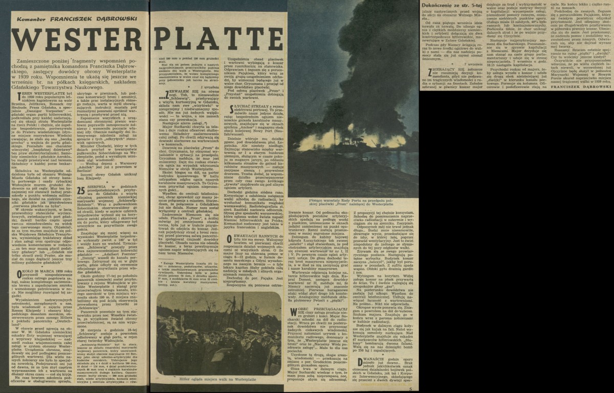 Archiwum / Artykuł nr 638 (27/1957) 25236/123969 Podziel się Tytuł Westerplatte Autor Franciszek Dąbrowski Kategoria Artykuł Artykuł z numeru 638 (27/1957) Data wydania 30 czerwca 1957 Tagi Westerplatte wojsko wspomnienia pamiętnik Marynarka Wojnna II Wojna Światowa
