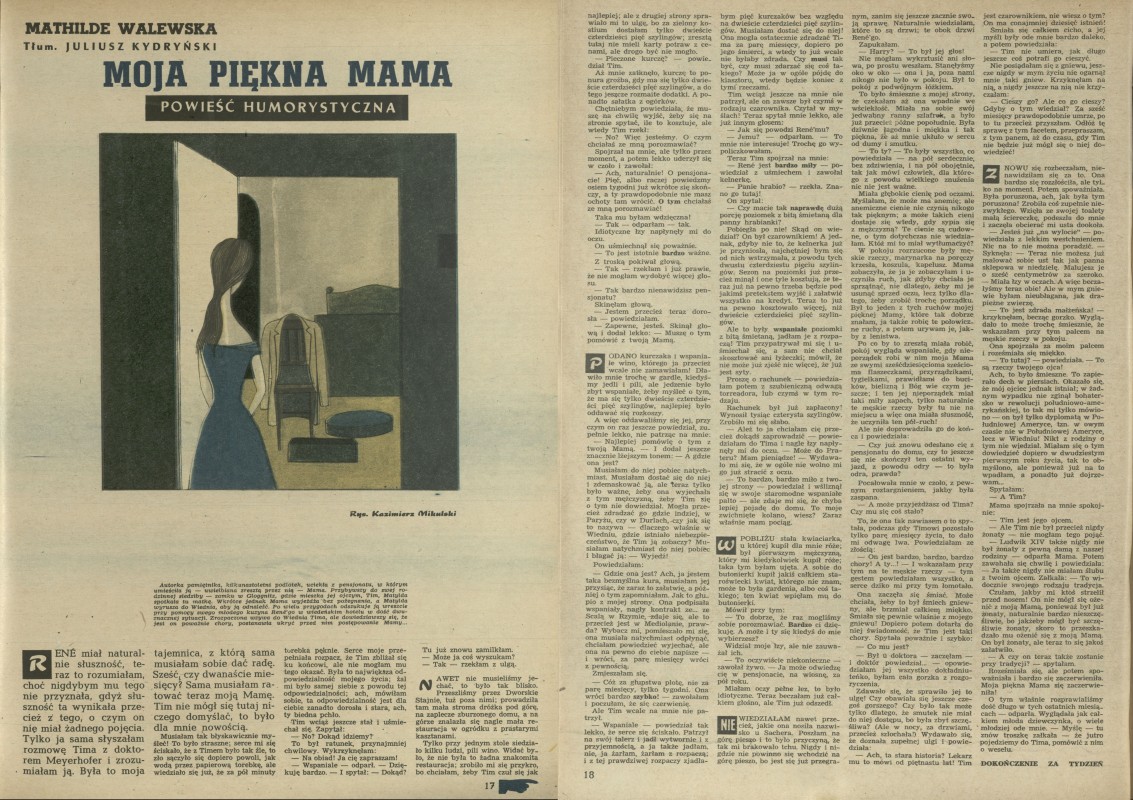 Archiwum / Proza nr 638 (27/1957) 25258/123969 Podziel się Tytuł Moja piękna mama Autor Mathilde Walewska Juliusz Kydryński Kategoria Proza Artykuł z numeru 638 (27/1957) Data wydania 30 czerwca 1957 Tagi literatura niemiecka powieść humorystyczna Mikulski