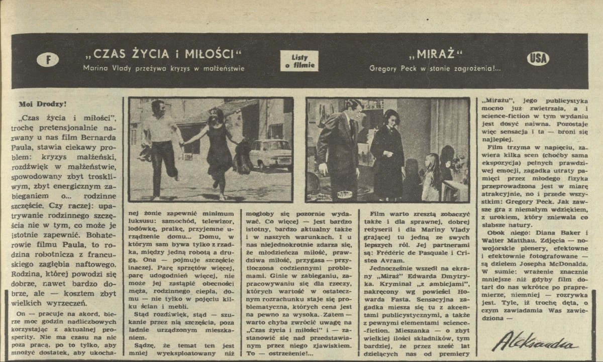 Archiwum / Listy o filmie nr 1375 (33/1971) 91/652 Podziel się Tytuł Listy o filmie Autor Aleksandra Rubryka Listy o filmie Artykuł z numeru 1375 (33/1971) Data wydania 15 sierpnia 1971 Tagi Czas życia i miłości Miraż Gregory Peck Marina Vlady