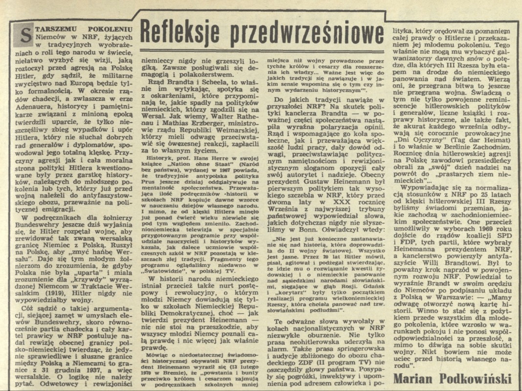 Archiwum / Artykuł nr 1376 (34/1971) 54/77 Podziel się Tytuł Reflekse przedwrześniowe Autor Marian Podkowiński Kategoria Artykuł Artykuł z numeru 1376 (34/1971) Data wydania 22 sierpnia 1971 Tagi Hitler NRF II Rzesza Wersal II wojna światowa