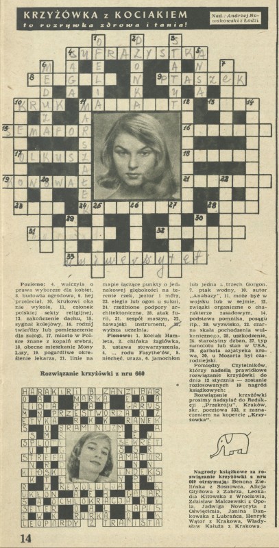 Archiwum / Krzyżówka z kociakiem nr 665 (01/1958) 01/964 Podziel się Tytuł Krzyżówka z kociakiem Rubryka Krzyżówka z kociakiem Artykuł z numeru 665 (1/1958) Data wydania 5 stycznia 1958