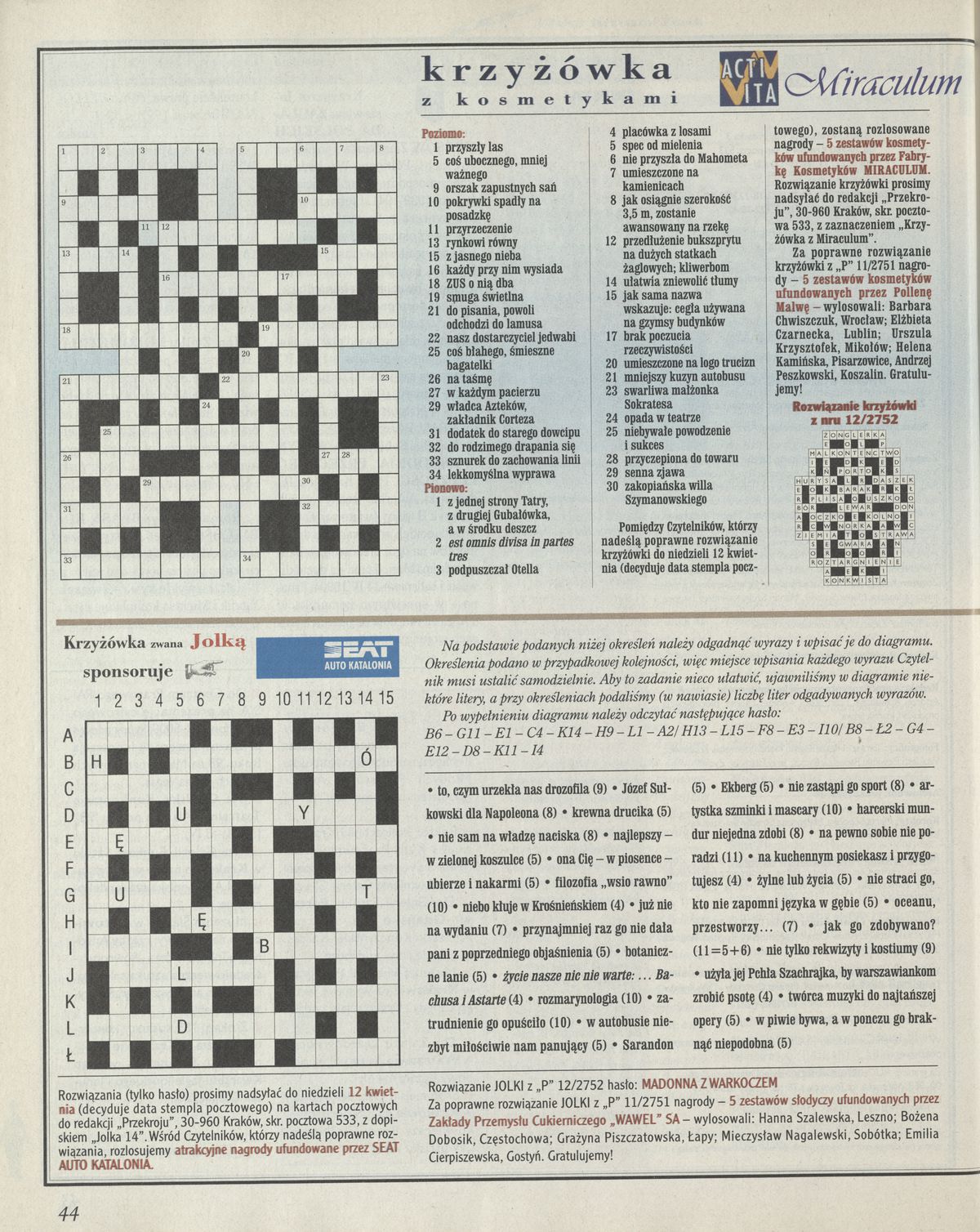 Archiwum / Krzyżówka nr 2754 (27/1998) 86/108 Podziel się Tytuł Krzyżówka z kosmetykami Rubryka Krzyżówka Artykuł z numeru 2754 (2755/1998) Data wydania 5 kwietnia 1998 Tagi Krzyżówka Rozrywka