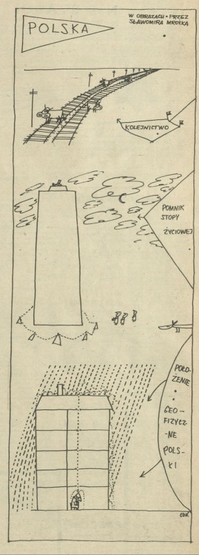 Archiwum / Polska w obrazkach Sławomira Mrożka nr 636 (25/1957) 25121/123969 Podziel się Tytuł Polska w obrazach Autor Sławomir Mrożek Rubryka Polska w obrazkach Sławomira Mrożka Artykuł z numeru 636 (25/1957) Prawa Diogenes Verlag AG Data wydania 16 czerwca 1957 Tagi żart rysunkowy