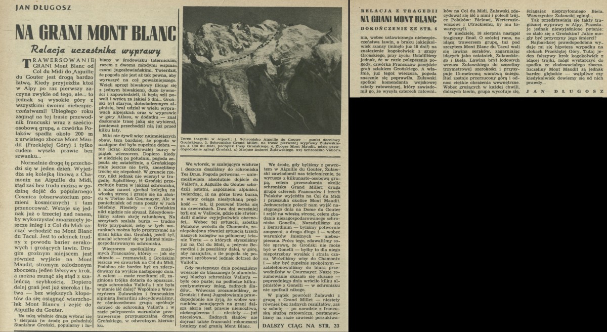 Archiwum / Relacja nr 647 (36/1957) 25764/123969 Podziel się Tytuł Na granicy Mont Blanc. Relacja uczestnika wyprawy Autor Jan Długosz Kategoria Relacja Artykuł z numeru 647 (36/1957) Data wydania 1 września 1957 Tagi alpinistyka turystyka wysokogórska wspinaczka Alpy tragedia lawina katastrofa