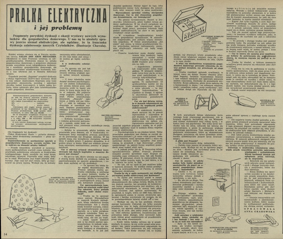 Archiwum / Nauka nr 632 (21/1957) 5/6 Podziel się Tytuł Pralka elektryczna i jej problemy Autor Anna Grabowska Chaval Kategoria Nauka Artykuł z numeru 632 (21/1957) Data wydania 19 maja 1957 Tagi gospodarstwo domowe