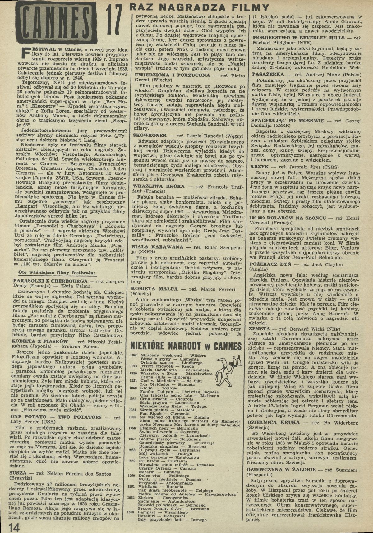 Archiwum / Film nr 999 (22/1964) 24/35 Podziel się Tytuł Cannes 17 raz nagradza filmy Rubryka Film Artykuł z numeru 999 (22/1964) Data wydania 31 maja 1964 Tagi Krzyk festiwal w Cannes Morderstwo w Beverly Hills Pasażerka Dziewczyna w żałobie Kobieta z piasków