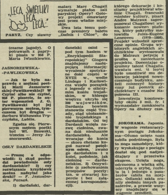 Archiwum / Lecą świetliki nr 960 (35/1963) 1/1 Podziel się Tytuł Lecą świetliki, lecą Rubryka Lecą świetliki Artykuł z numeru 960 (35/1963) Data wydania 1 września 1963 Tagi Marc Chagall