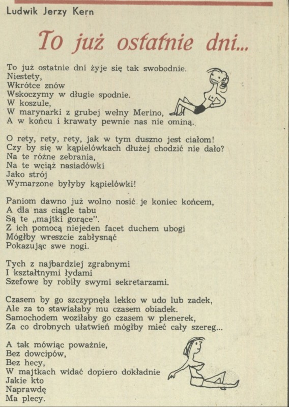 Archiwum / Poezja nr 1377 (35/1971) 61/97 Podziel się Tytuł To już ostatnie dni... Autor Ludwik Jerzy Kern Kategoria Poezja Artykuł z numeru 1377 (35/1971) Data wydania 29 sierpnia 1971 Tagi Ludwik Jerzy Kern poezja
