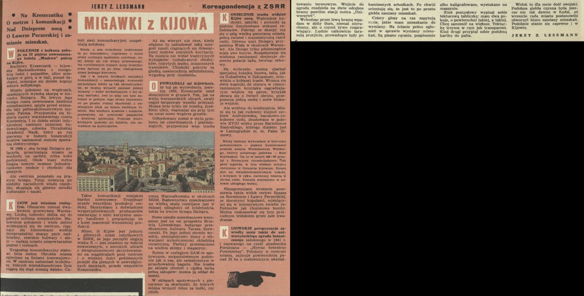 Archiwum / korespondencja własna "Przekroju" nr 1345 (03/1971) 05/97 Podziel się Tytuł Migawki z Kijowa Autor Jerzy Z. Lessman Rubryka korespondencja własna "Przekroju" Artykuł z numeru 1345 (3/1971) Data wydania 17 stycznia 1971 Tagi ZSRR Kijów Ukraina