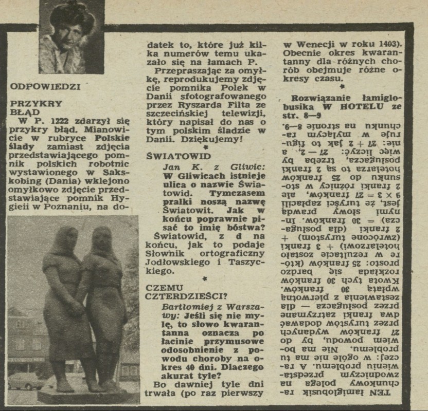 Archiwum / Skrzynka odpowiedzi nr 1223 (37/1968) 50691/123969 Podziel się Tytuł Odpowiedzi Rubryka Skrzynka odpowiedzi Artykuł z numeru 1223 (37/1968) Data wydania 5 września 1968