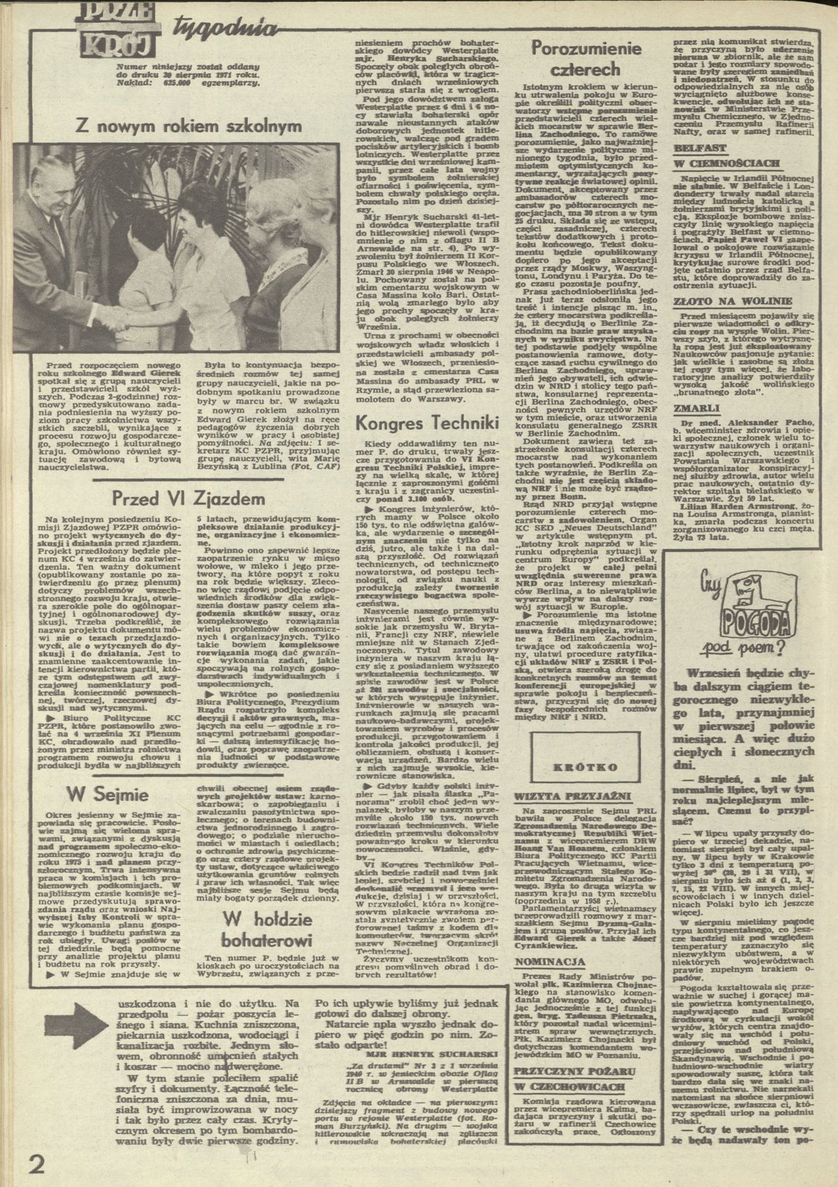 Archiwum / Przekrój tygodnia nr 1378 (36/1971) 2/2 Podziel się Tytuł Przekrój Tygodnia Rubryka Przekrój tygodnia Artykuł z numeru 1378 (36/1971) Data wydania 5 września 1971 Tagi VI Zjazd PZPR Kongres Techniki kongres inżynierów