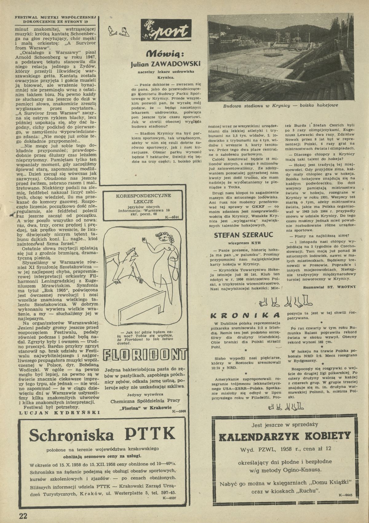 Archiwum / Sport nr 705 (41/1958) 583/1271 Podziel się Tytuł Mówią: Julian Zawadowski Autor Stanisław Wrotny Rubryka Sport Artykuł z numeru 705 (41/1958) Data wydania 12 października 1958 Tagi Stefan Szeurac
