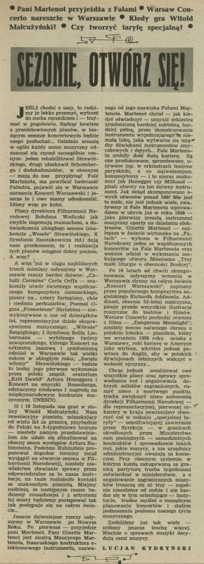Archiwum / Kultura nr 652 (41/1957) 46/51 Podziel się Tytuł Sezonie, otwórz się! Autor Lucjan Kydryński Kategoria Kultura Artykuł z numeru 652 (41/1957) Data wydania 6 października 1957 Tagi muzyka koncerty