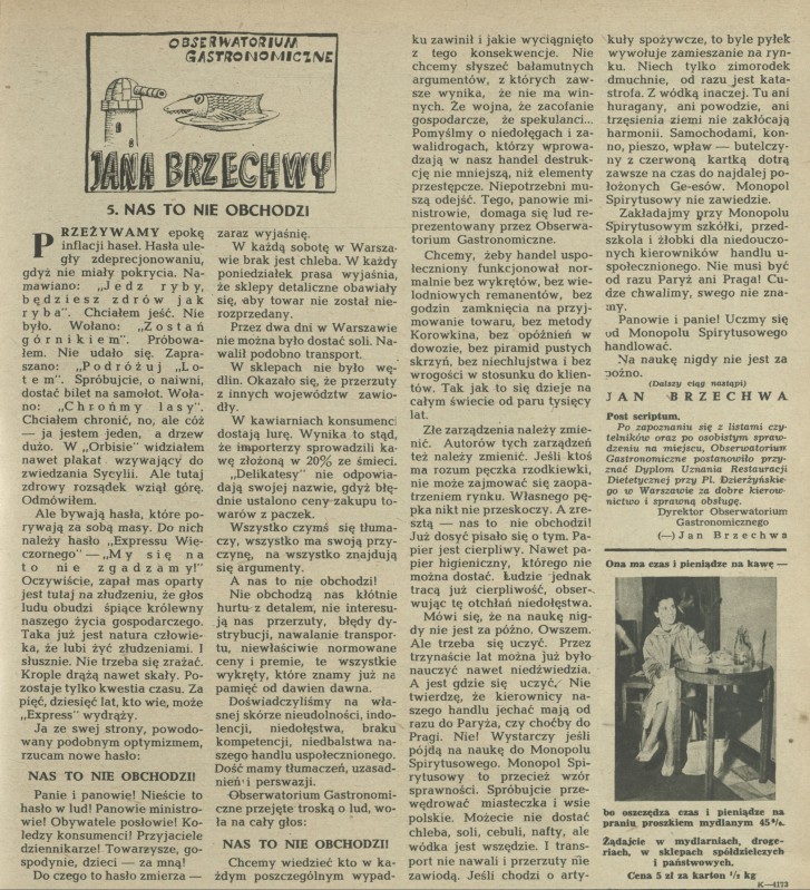 Archiwum / Obserwatorium gastronomiczne Jana Brzechwy nr 646 (35/1957) 14/79 Podziel się Tytuł Nas to nie obchodzi Autor Jan Brzechwa Rubryka Obserwatorium gastronomiczne Jana Brzechwy Artykuł z numeru 646 (35/1957) Data wydania 25 sierpnia 1957 Tagi kulinaria gastronomia handel towary
