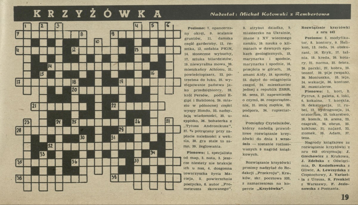 Archiwum / Krzyżówka nr 646 (35/1957) 25725/123969 Podziel się Tytuł Krzyżówka Rubryka Krzyżówka Artykuł z numeru 646 (35/1957) Data wydania 25 sierpnia 1957