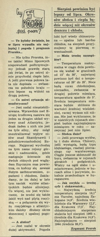 Archiwum / Czy pogoda pod psem? nr 1269 (31/1969) 131/391 Podziel się Tytuł Czy pogoda pod psem? Autor Zygmunt Prorok Rubryka Czy pogoda pod psem? Artykuł z numeru 1269 (31/1969) Data wydania 3 sierpnia 1969 Tagi pogoda prognoza Proroka