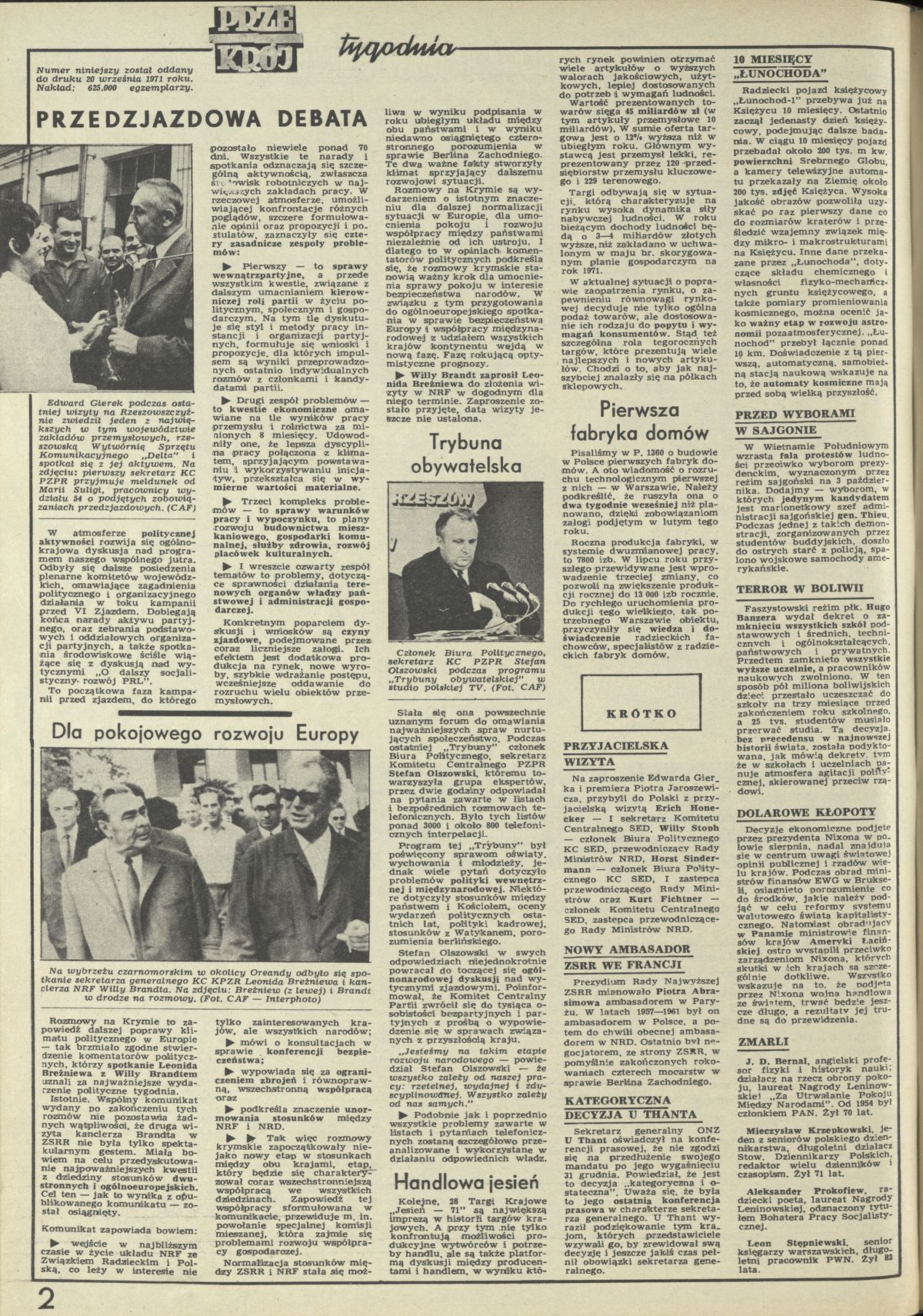 Archiwum / Przekrój tygodnia nr 1381 (39/1971) 09/15 Podziel się Tytuł Przekrój Tygodnia Rubryka Przekrój tygodnia Artykuł z numeru 1381 (39/1971) Data wydania 26 września 1971 Tagi Edward Gierek debata Rzeszów KC PZPR fabryka domów Willy Brandt