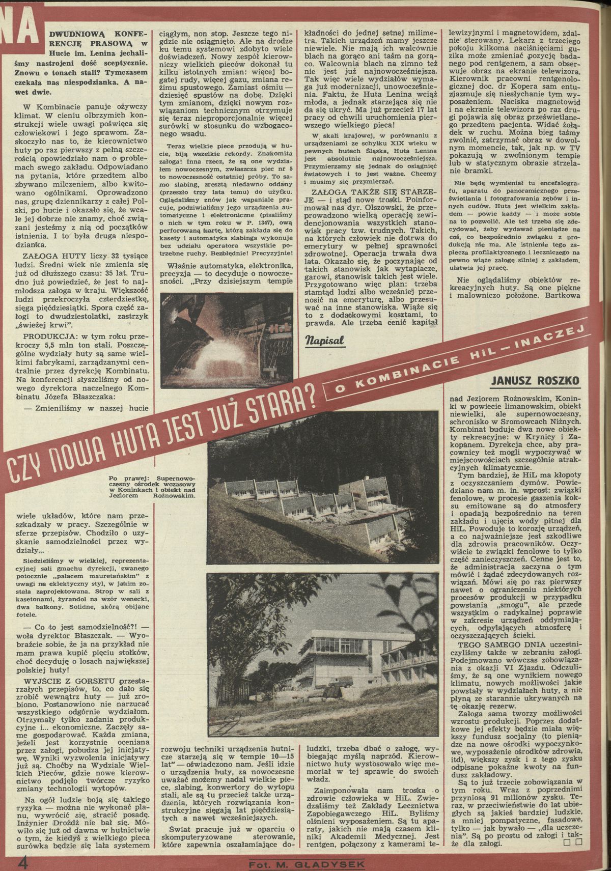 Archiwum / Reportaż nr 1381 (39/1971) 56219/123969 Podziel się Tytuł Czy Nowa Huta jest już stara? Autor Janusz Roszko Kategoria Reportaż Artykuł z numeru 1381 (39/1971) Data wydania 26 września 1971 Tagi Nowa Huta Roszo kombinat HiL huta