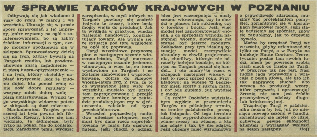 Archiwum / Moda nr 1381 (39/1971) 696/1980 Podziel się Tytuł W sprawie Targów Krajowych w Poznaniu Autor Barbara Hoff Rubryka Moda Artykuł z numeru 1381 (39/1971) Data wydania 26 września 1971 Tagi hoff Targi Krajowe Poznań