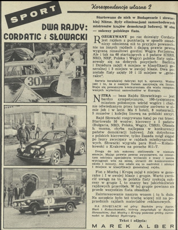 Archiwum / korespondencja własna "Przekroju" nr 1381 (39/1971) 59/84 Podziel się Tytuł Dwa rajdy: Cordatic i Słowacki Autor Marek Alber Rubryka korespondencja własna "Przekroju" Artykuł z numeru 1381 (39/1971) Data wydania 26 września 1971 Tagi Cordatic rajd rajd slowacki Nitra