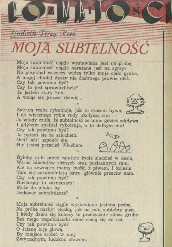 Archiwum / Poezja nr 1382 (40/1971) 56281/123969 Podziel się Tytuł Moja subtelność Autor Ludwik Jerzy Kern Kategoria Poezja Artykuł z numeru 1382 (40/1971) Data wydania 3 października 1971 Tagi Ludwik Jerzy Kern poezja