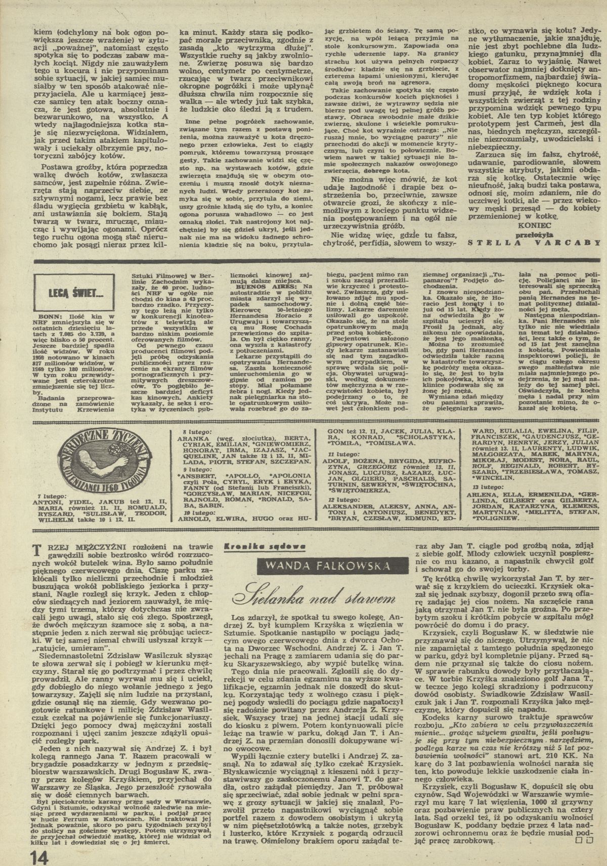 Archiwum / Kronika sądowa nr 1348 (06/1971) 06/51 Podziel się Tytuł Sielanka nad stawem Autor Wanda Falkowska Rubryka Kronika sądowa Artykuł z numeru 1348 (6/1971) Data wydania 7 lutego 1971