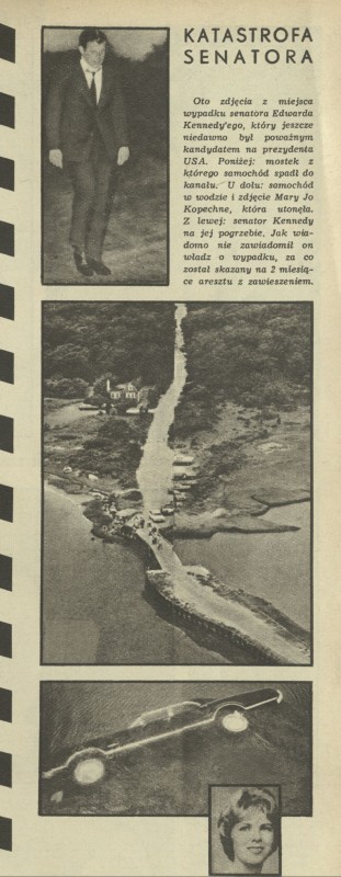 Archiwum / Fotografia nr 1270 (32/1969) 52146/123969 Podziel się Tytuł Katastrofa senatora Kategoria Fotografia Artykuł z numeru 1270 (32/1969) Data wydania 10 sierpnia 1969 Tagi Edward Kennedy wypadek