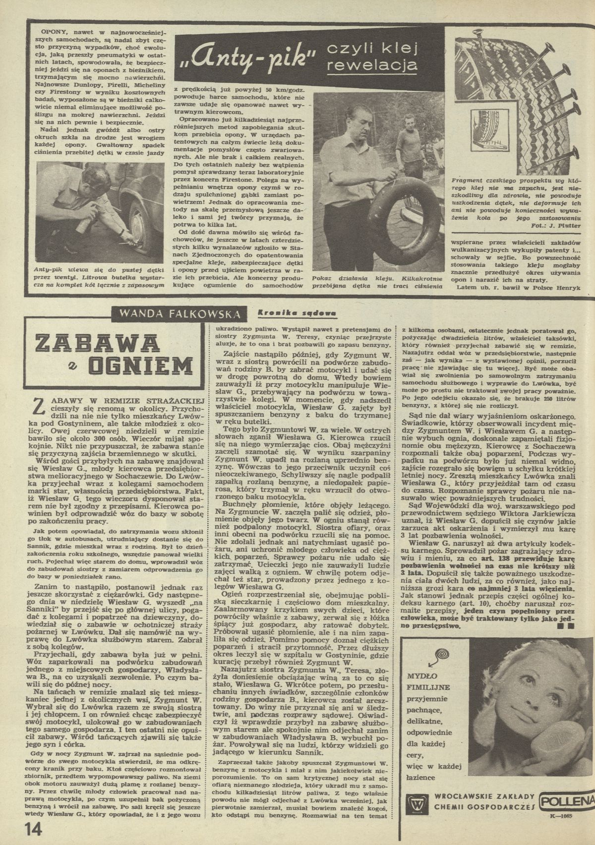 Archiwum / Kronika sądowa nr 1349 (07/1971) 07/51 Podziel się Tytuł Zabawa z ogniem Autor Wanda Falkowska Rubryka Kronika sądowa Artykuł z numeru 1349 (7/1971) Data wydania 14 lutego 1971