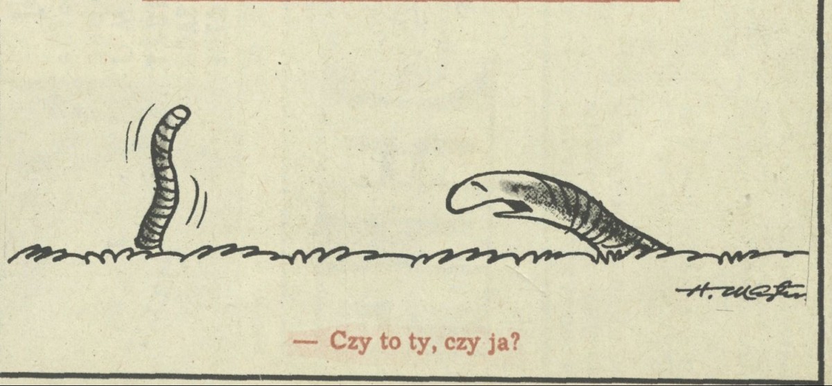 Archiwum / Rozmaitości [old] nr 1270 (32/1969) 2/4 Podziel się Tytuł [- Czy to ty, czy ja?] Rubryka Rozmaitości [old] Artykuł z numeru 1270 (32/1969) Data wydania 10 sierpnia 1969 Tagi dżdżownica