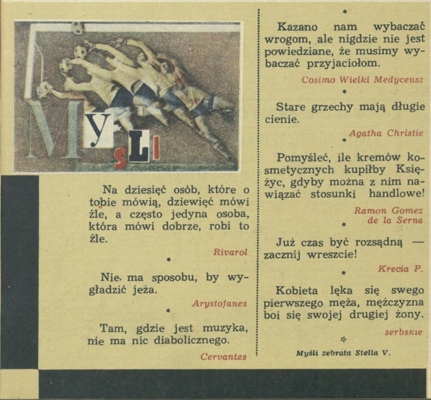 Archiwum / Myśli nr 1383 (41/1971) 13/59 Podziel się Tytuł Myśli Autor Stella Varcaby Rubryka Myśli Artykuł z numeru 1383 (41/1971) Data wydania 10 października 1971 Tagi Agatha Christie Cervantes Arystoteles