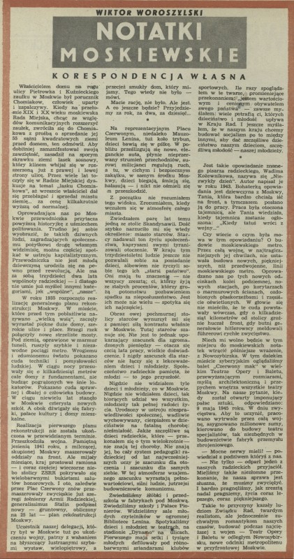 Archiwum / korespondencja własna "Przekroju" nr 219 (25/1949) 02/10 Podziel się Tytuł Notatki moskiewskie Autor Wiktor Woroszylski Rubryka korespondencja własna "Przekroju" Artykuł z numeru 219 (25/1949) Data wydania 19 czerwca 1949 Tagi Wiktor Woroszylski Moskwa rekonstrukcja Moskwy