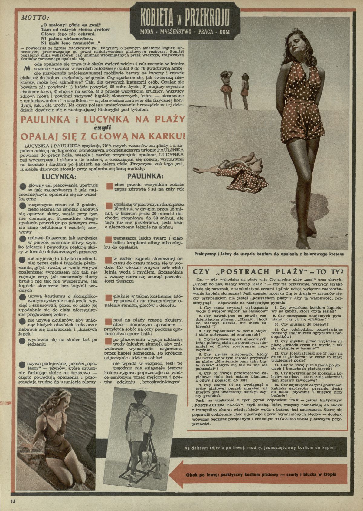 Archiwum / Kobieta w Przekroju nr 219 (25/1949) 39/100 Podziel się Tytuł Kobieta w Przekroju Autor Lucynka i Paulinka Rubryka Kobieta w Przekroju Artykuł z numeru 219 (25/1949) Data wydania 19 czerwca 1949 Tagi moda porady plaża opalanie kostium kąpielowy