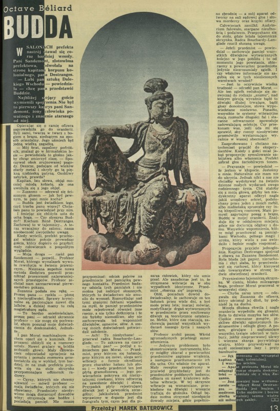 Archiwum / Opowiadanie nr 1385 (43/1971) 67/73 Podziel się Tytuł Budda Autor Octave Beliard Marek Baterowicz Kategoria Opowiadanie Artykuł z numeru 1385 (43/1971) Data wydania 24 października 1971 Tagi literatura francuska