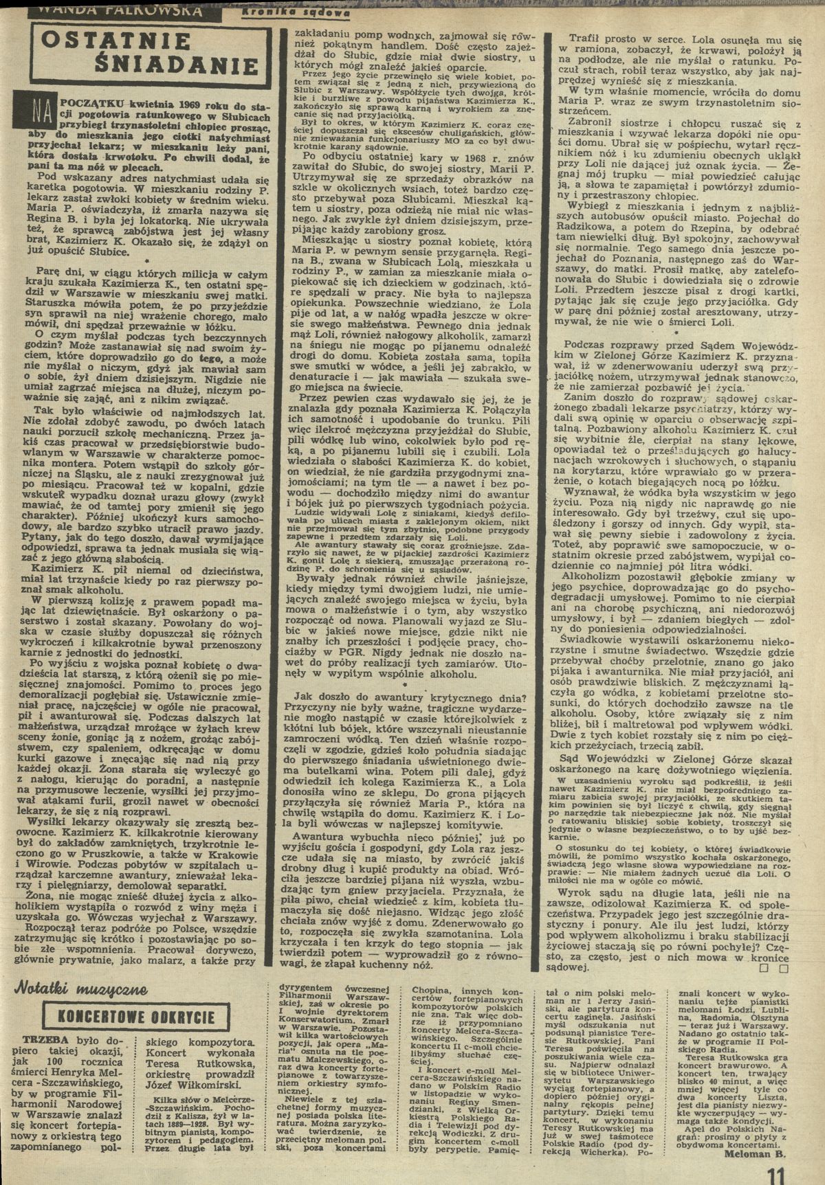 Archiwum / Kronika sądowa nr 1288 (50/1969) 14/1750 Podziel się Tytuł Ostatnie śniadanie Autor Wanda Falkowska Rubryka Kronika sądowa Artykuł z numeru 1288 (50/1969) Data wydania 14 grudnia 1969