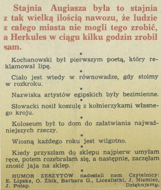 Archiwum / Humor zeszytów szkolnych nr 1410 (16/1972) 59/323 Podziel się Tytuł Humor zeszytów Rubryka Humor zeszytów szkolnych Artykuł z numeru 1410 (16/1972) Data wydania 16 kwietnia 1972
