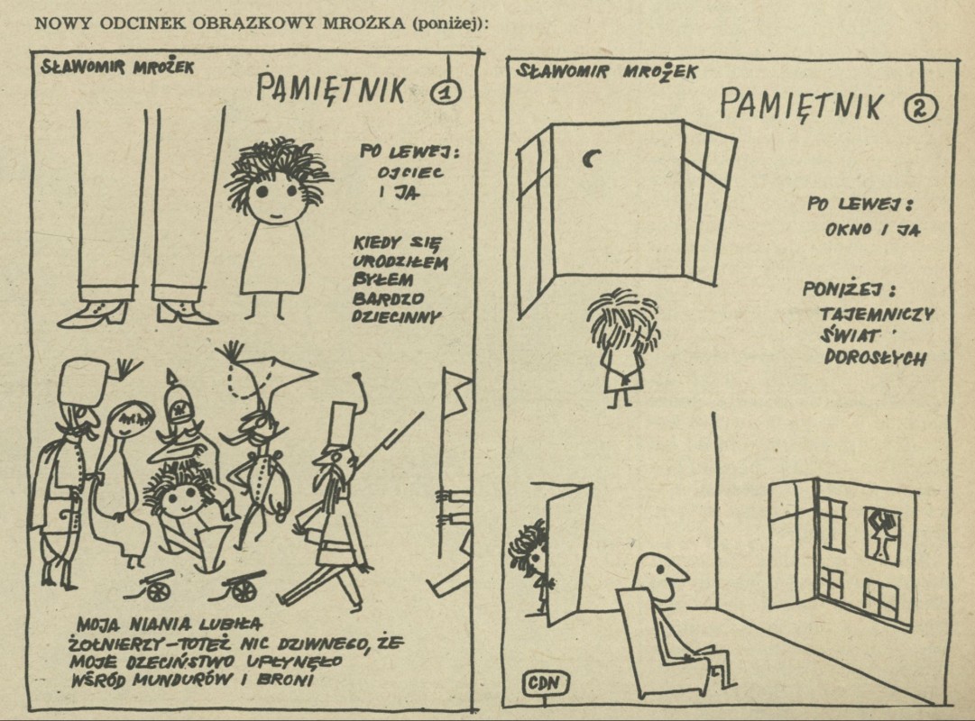Archiwum / Historyjki obrazkowe nr 693 (29/1958) 79/485 Podziel się Tytuł Pamiętnik Autor Sławomir Mrożek Kategoria Historyjki obrazkowe Artykuł z numeru 693 (29/1958) Prawa Diogenes Verlag AG Data wydania 20 lipca 1958